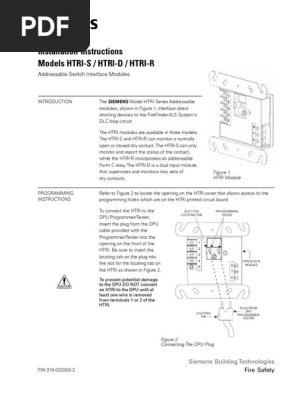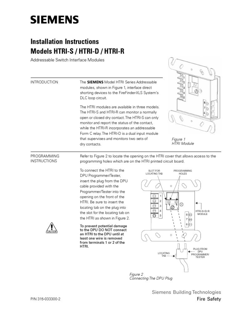 The Siemens Mode HTRI-series intelligent interface modules are available in three 3 types. The sole purpose of Model TRI-S is to monitor and report the status of the contact while Model TRI-R incorporates an addressable Form C relay. POWER LIMITED WIRING FOR TRI-R ADDRESSABLE INTERFACE MODULE In compliance with NEC Article 760 all power limited.